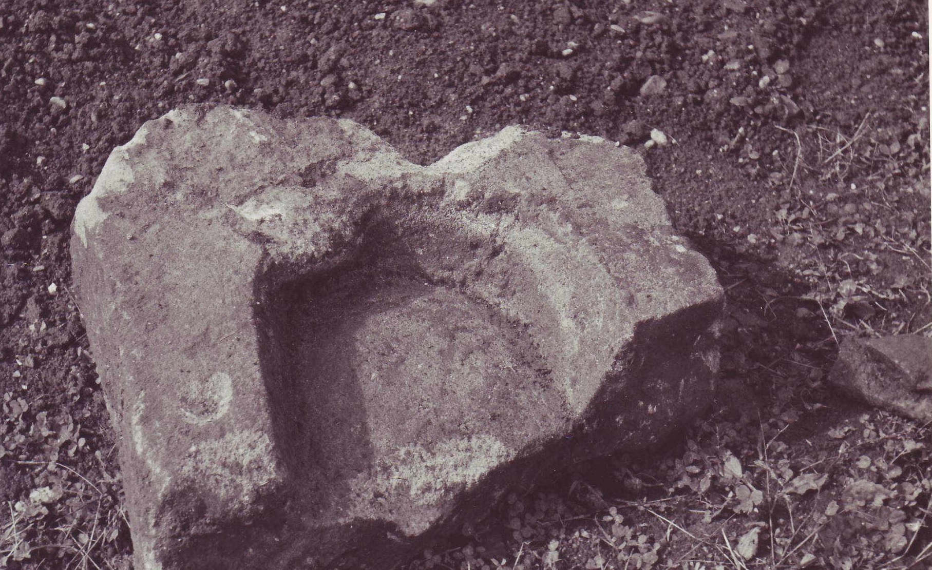 Lid of Roman stone coffin, or sarcophagus, found near site of Roman building. Now on display in Abingdon Museum. (c) AAAHS